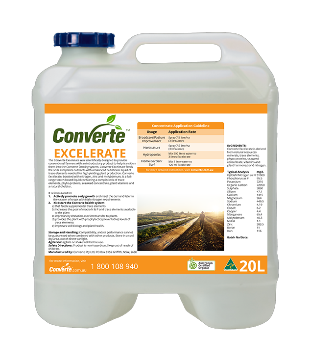 Converte Excelerate was scientifically designed to provide conventional farmers with an introductory product to help transition them into the Converte farming system.